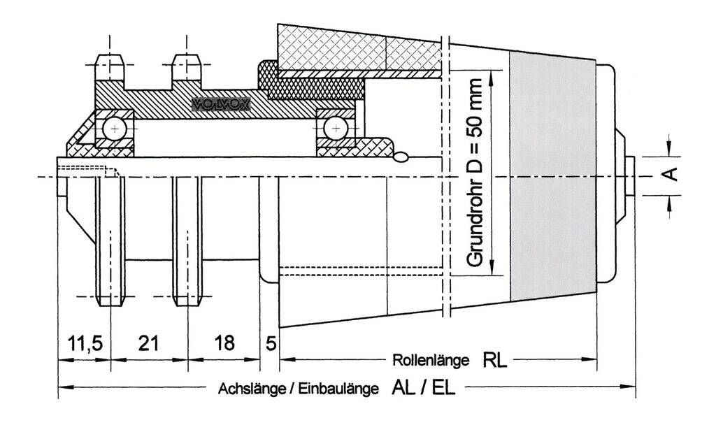 V 5.56 Festantrieb verschweißt mit kon. Stahlrohr