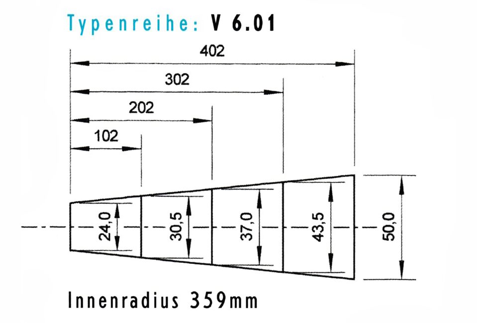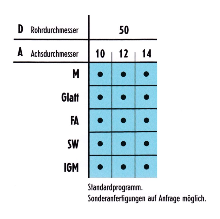 Bei den Ausführungen -Konisches Stahlrohr -Stahlrohrmit aufgegossenem Kunststoff sind Konizitäten nach Kundenwunsch möglich
